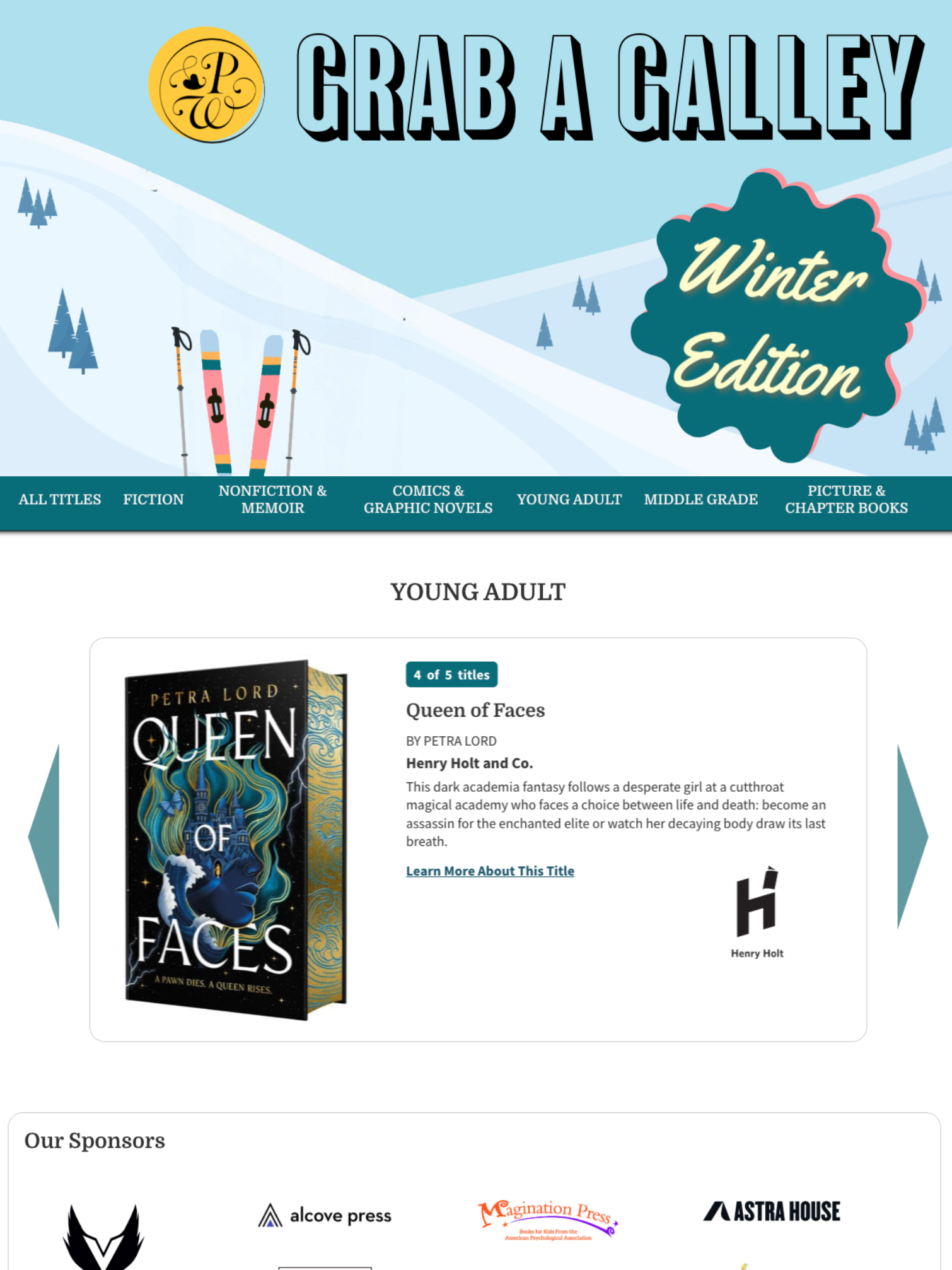 PW’s giveaway platform connects your titles directly with librarians, booksellers, readers, and media—all before they hit the shelves. Designed to deliver targeted, high-impact exposure, this program builds buzz where it matters most, combining 24/7 access with unparalleled reach to PW’s dedicated audience.